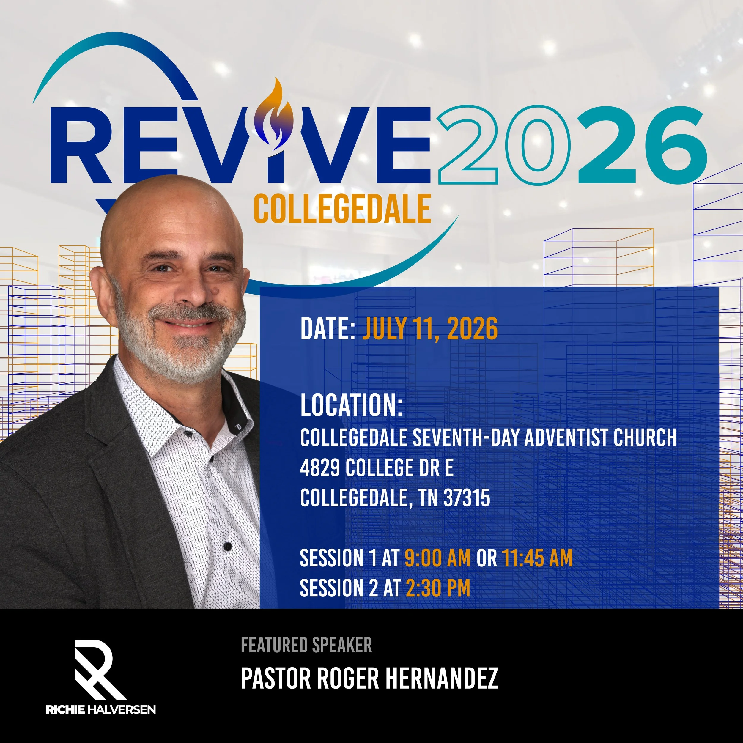 July 11 is our next Empowerment Sabbath for Revive 2026. Join us for session 1 at either 9 AM or 11:45 AM and session 2 at 2:30 PM for messages that not only inspire but empower us to share our faith in the simple everyday things of life. Pastor Roger Hernandez will be our guest speaker. You do not want to miss it!