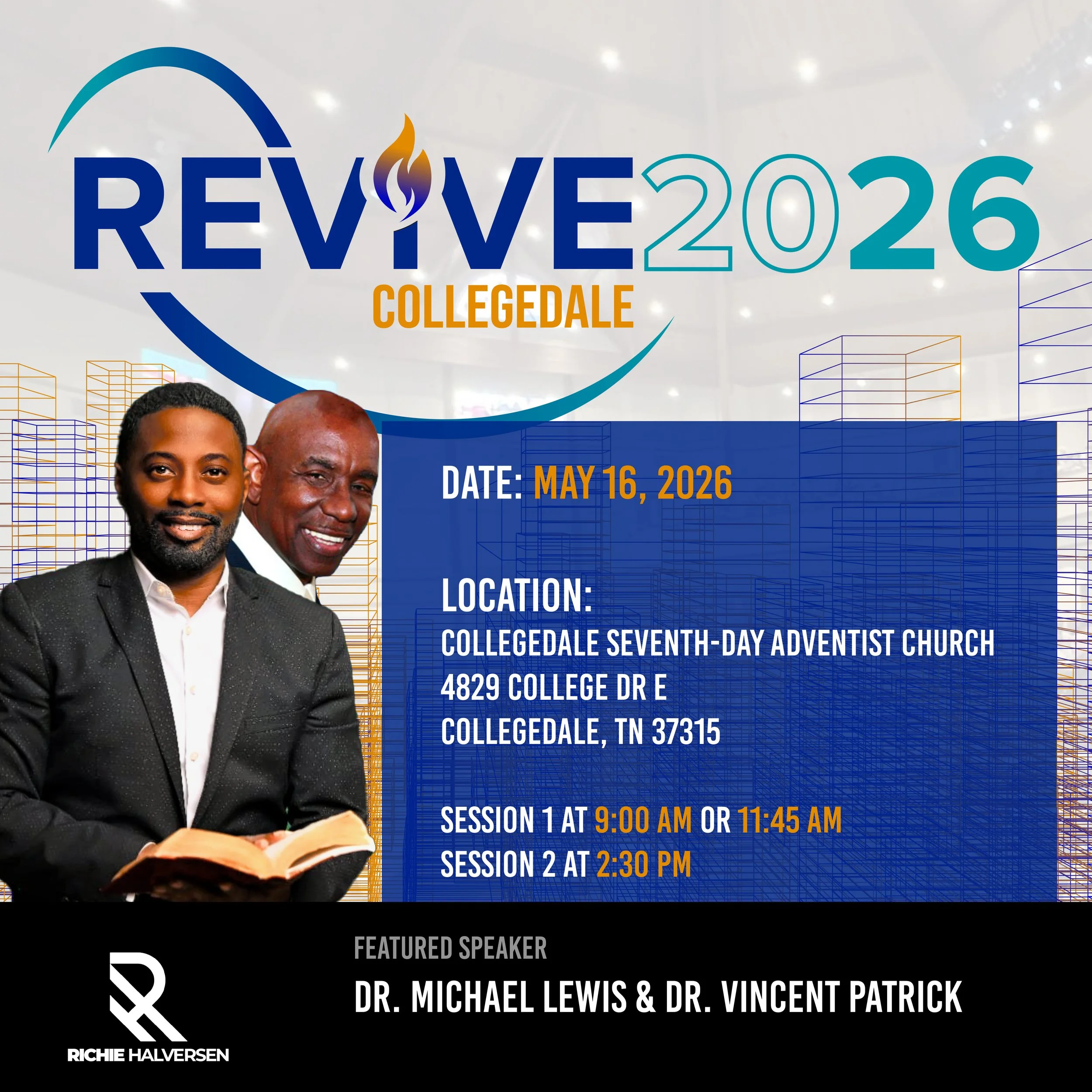 May 16 is our next Empowerment Sabbath for Revive 2026. Join us for session 1 at either 9 AM or 11:45 AM and session 2 at 2:30 PM for messages that not only inspire but empower us to share our faith in the simple everyday things of life. Dr. Michael Lewis and Dr. Vincent Patrick will be our guest speakers. You do not want to miss it!